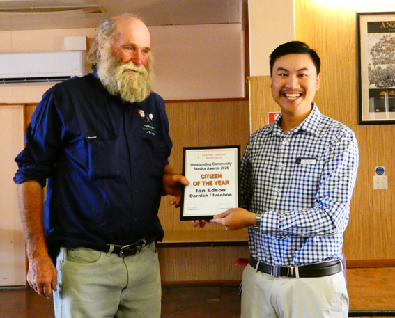 Ivanhoe Citizen of the Year Ian EdsonA member of numerous community and farm industry committees, Ian has volunteered with Darnick Bush Fire Brigade for 50 years.