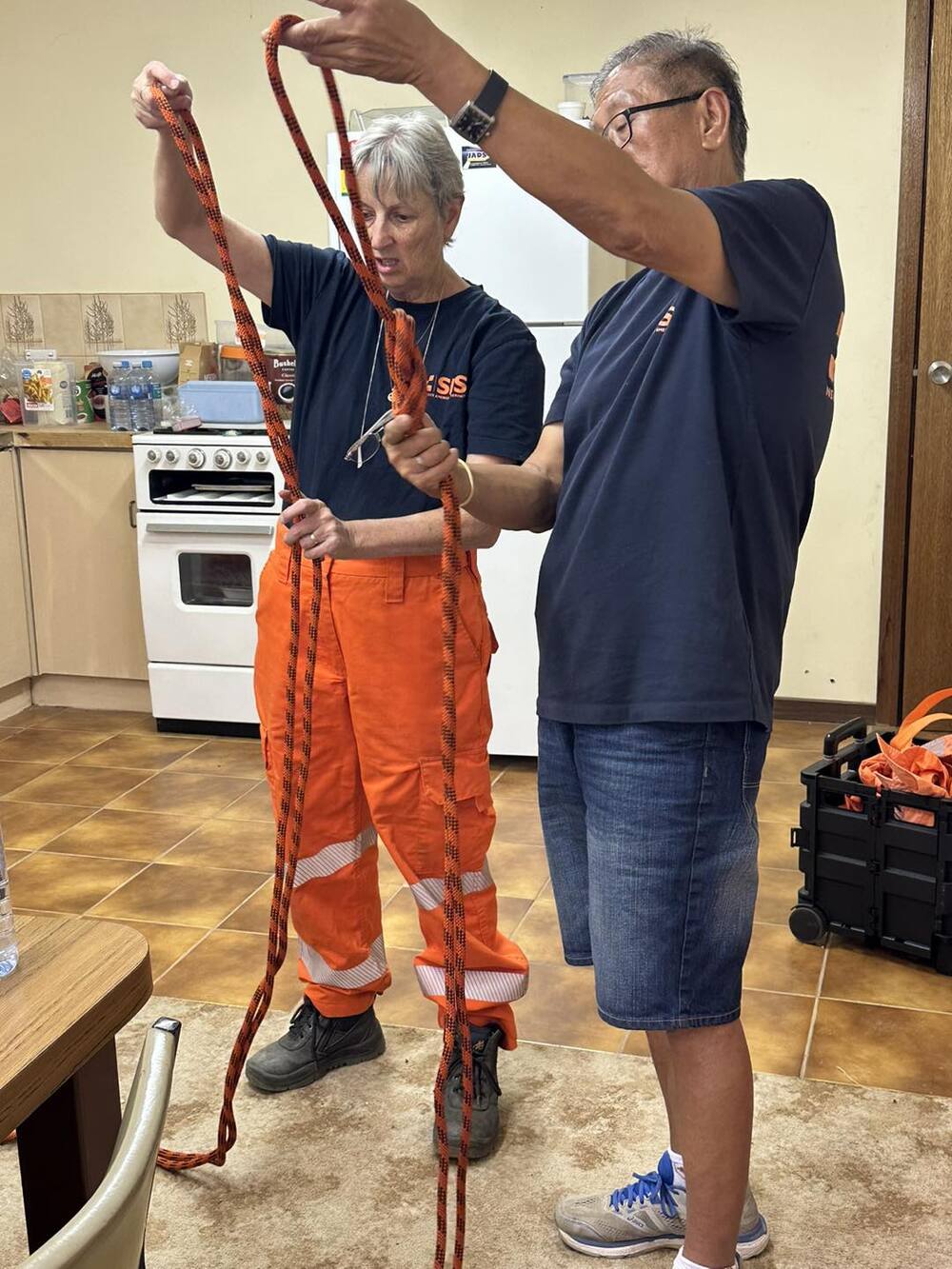 Members of the Balranald SES Members practicing their knots at training on Saturday February 22.