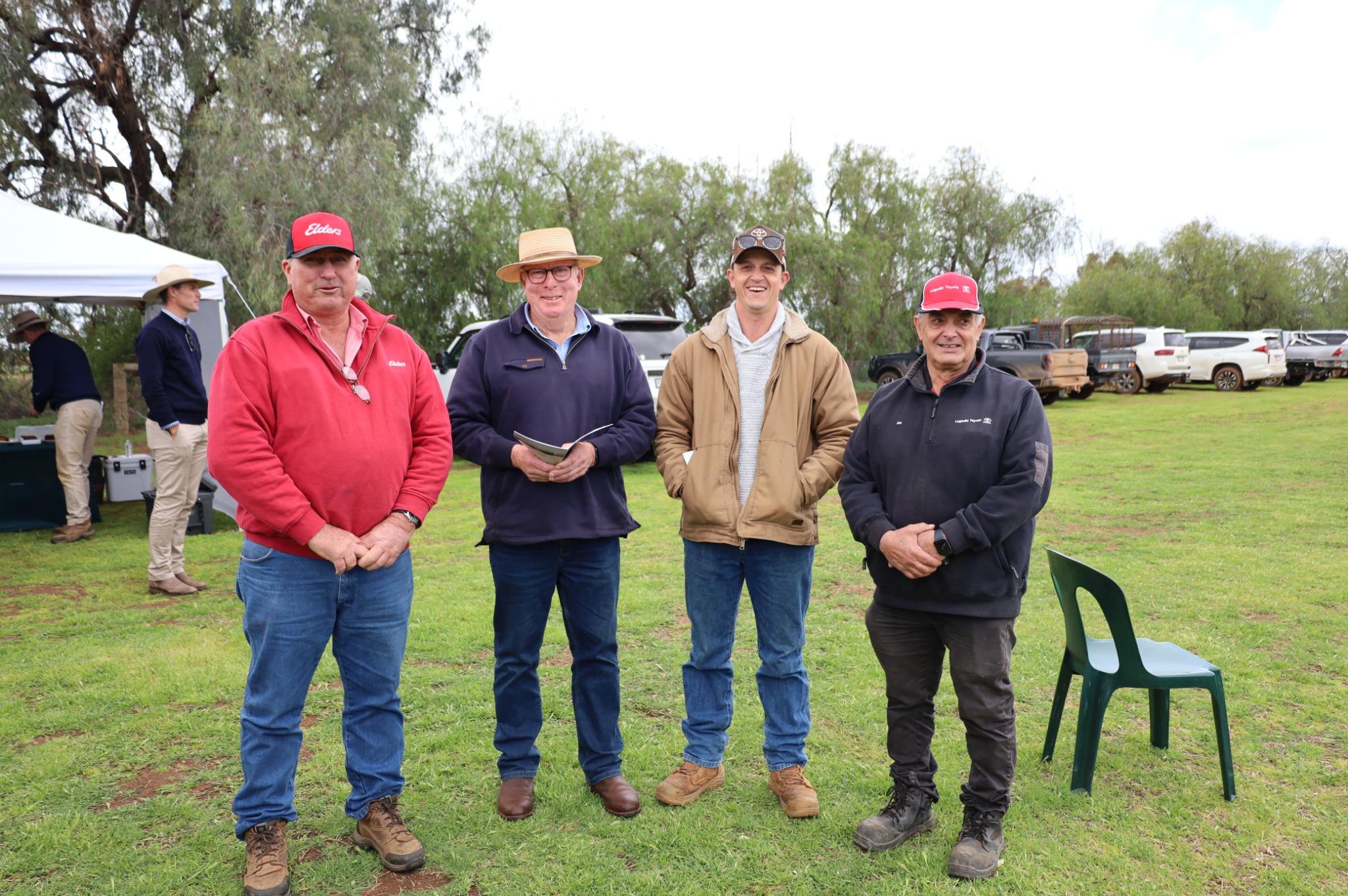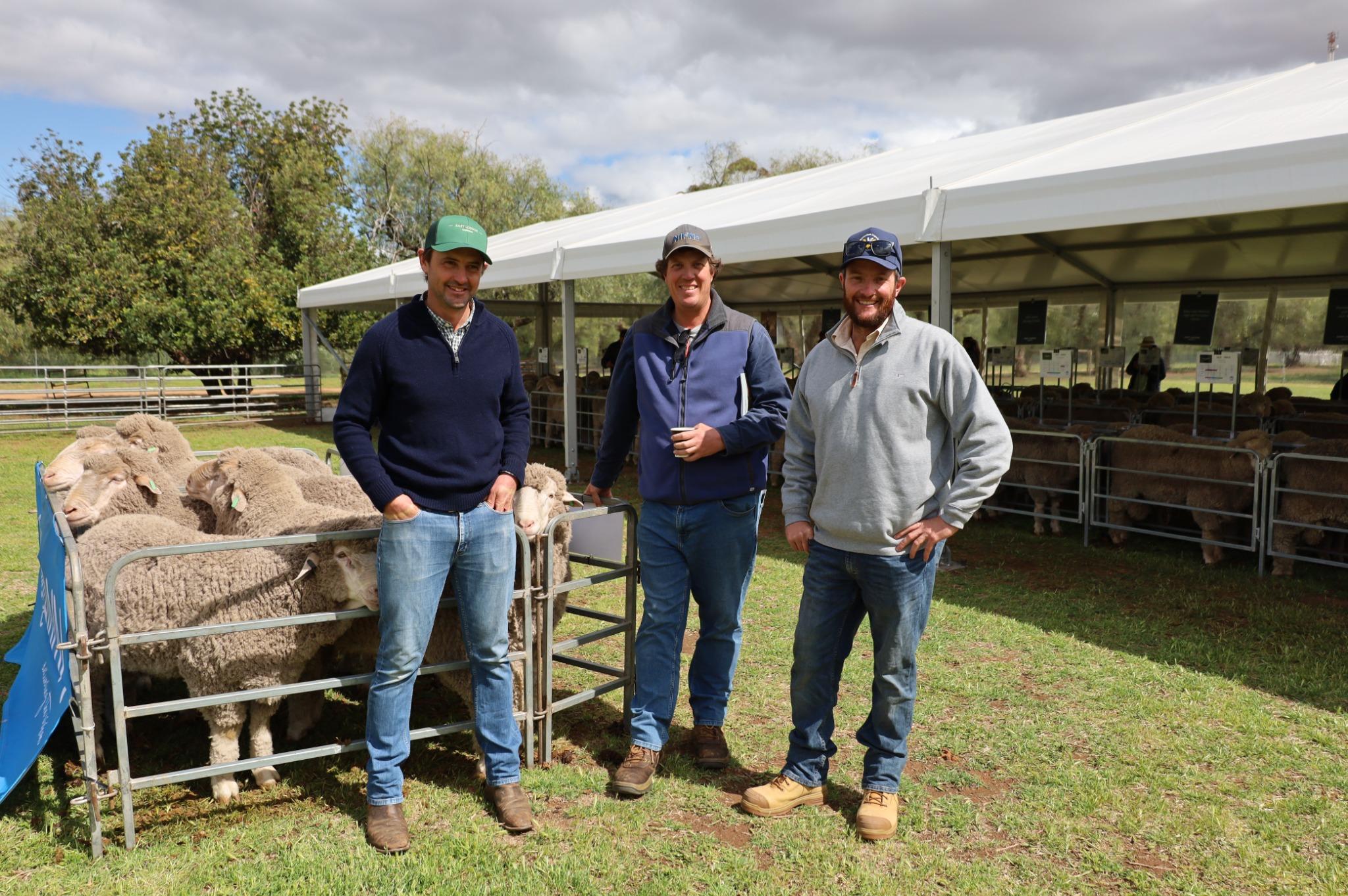 East Loddon principal Tom Hooke (left) with clients, Sandigo graziers Dave Anderson and Matt Anderson at the sale at Warwillah, near Wanganella last week.