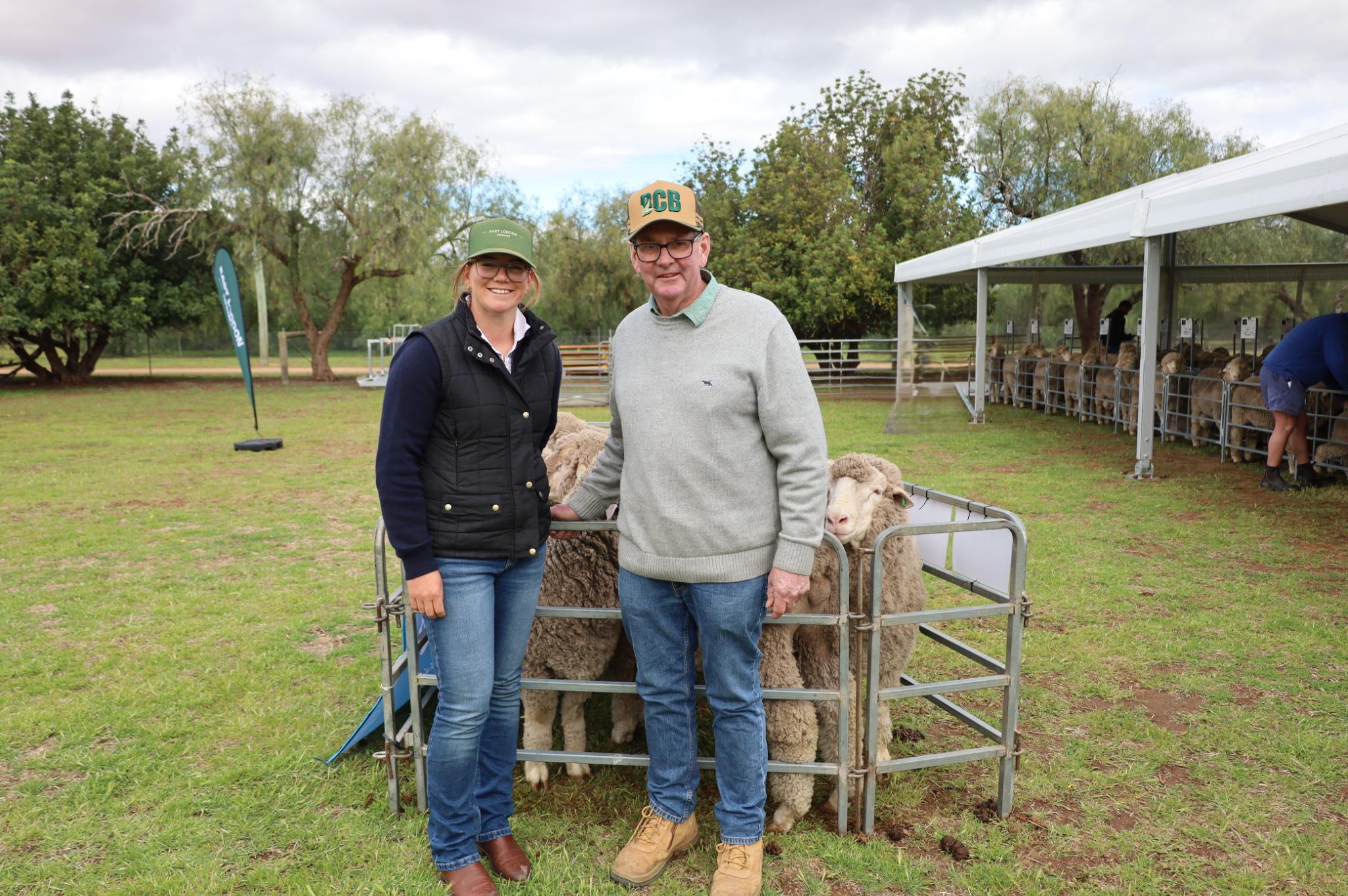 East Loddon Merino Stud founder, Bill Hooke, with stud team member Rose Nevinson. Ms Nevinson has been breeding her own Merino flock since the tender age of 16, and was recently awarded the 2025 Future Merino Breeder Scholarship.