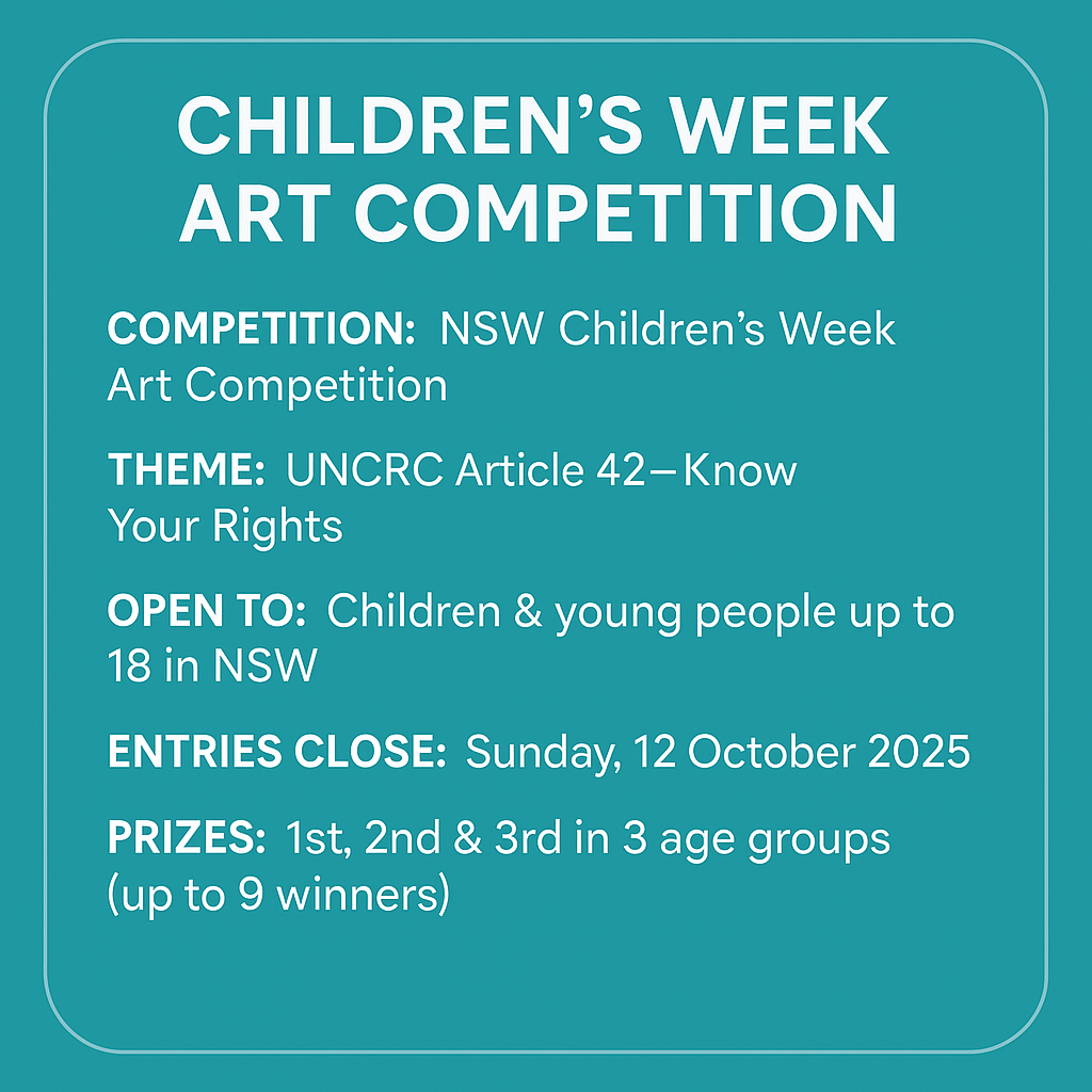 The competition is open to all children and young people up to the age of 18 living in NSW. Group entries are accepted and encouraged.
