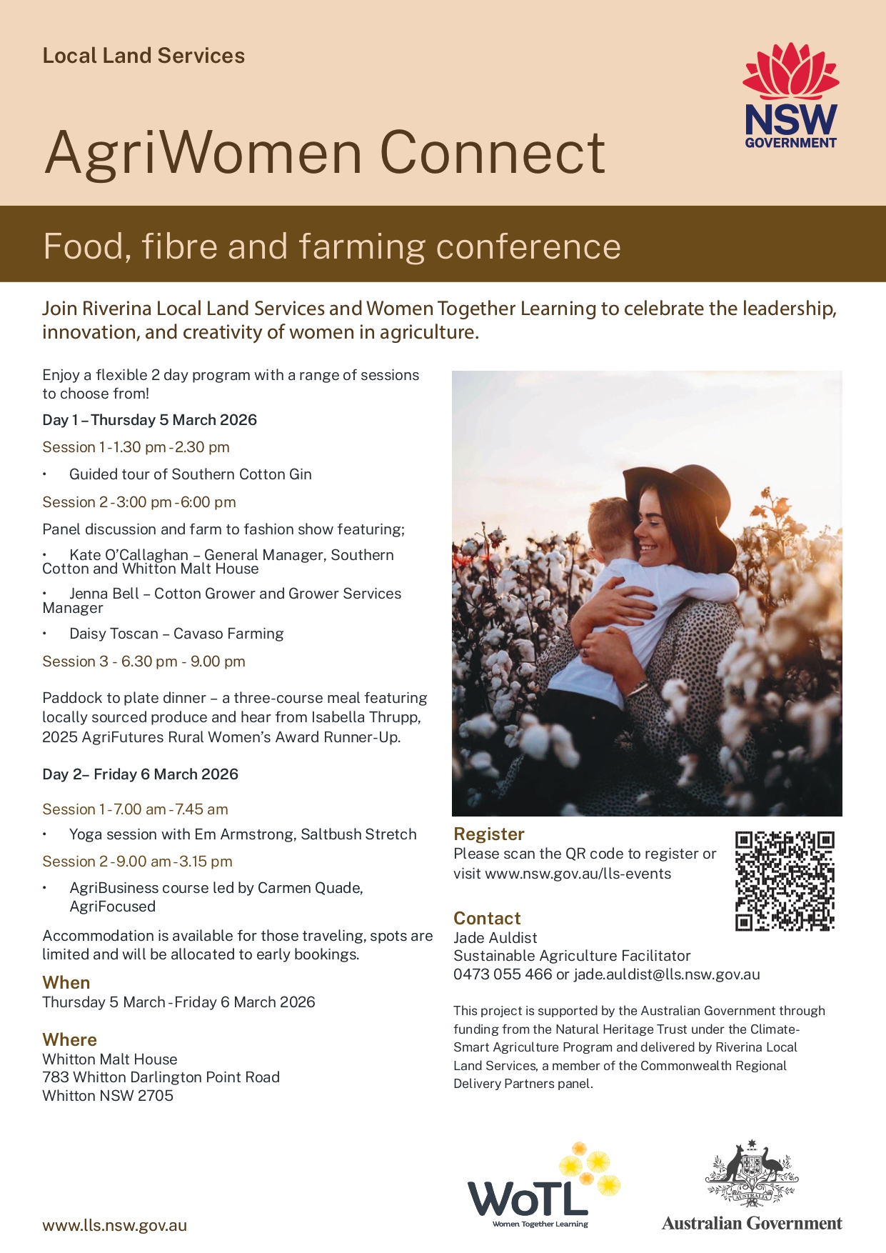 Registration: Open now via the NSW Local Land Services events page or by scanning the official event QR code (below).