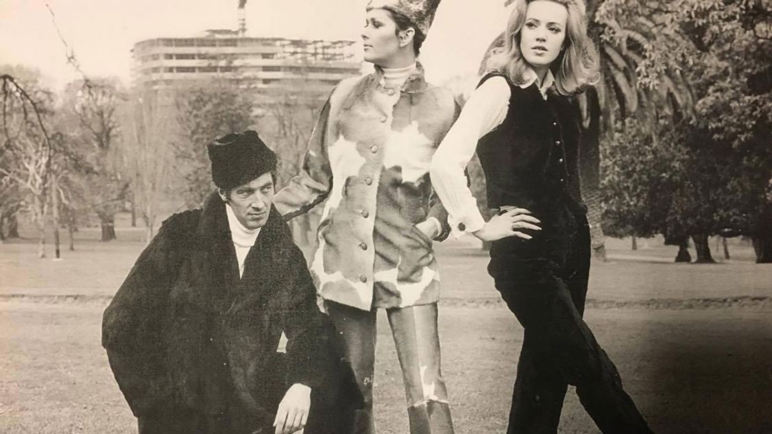 Photo caption: John Claringbold poses with models for a newspaper photographer. Supplied, Tom McEvoy.