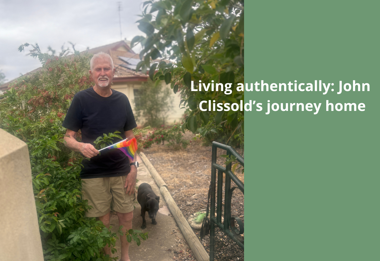 At 80 years young, or as he prefers, ‘67 and some summers’, John Clissold sits in his Hay home, the rainbow flag visible from the street when he first moved in, a symbol of a life f inally lived on his own terms. Born in Broken Hill in 1945, John’s early years followed a conventional path.