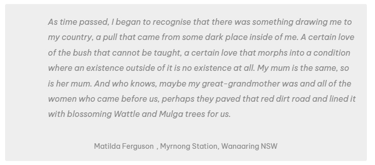 Matilda Ferguson moved to the red dirt of Wanaaring in North Western NSW when she was nine. It was as though the place had been waiting for her. As her family had contemplated uprooting from their home on the outskirts of Bathurst, it was Matilda whose sage childhood insight sealed the deal.