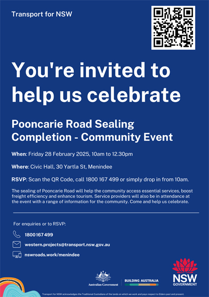 A Menindee Community Event is being held to celebrate on Friday 28th February 10am-12:30pm at the Civic Hall.