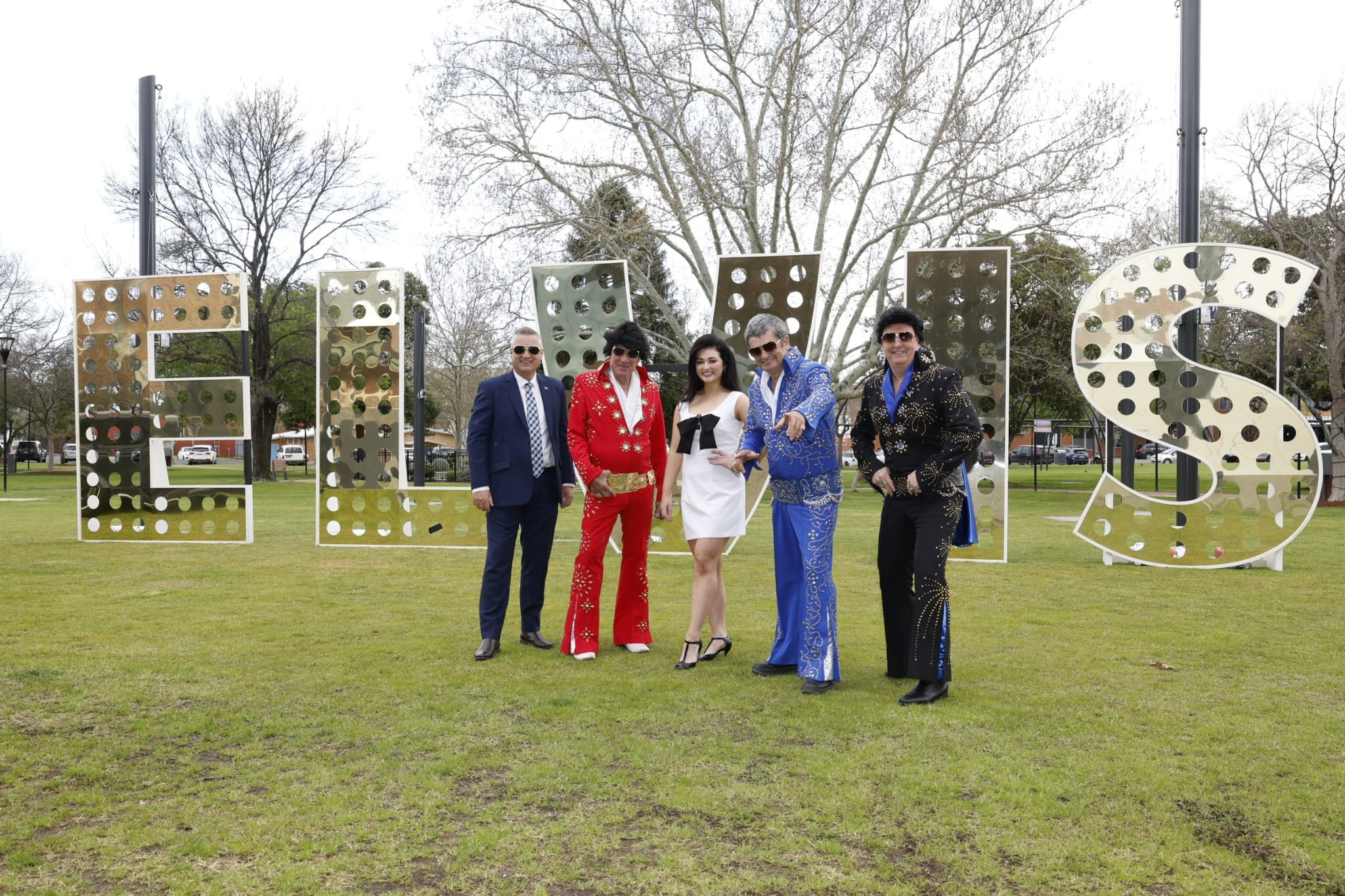 Above: Member for Parkes Jamie Chaffey with Elvises and Priscilla at the launch of the 2026 Parkes Elvis Festival late last year.