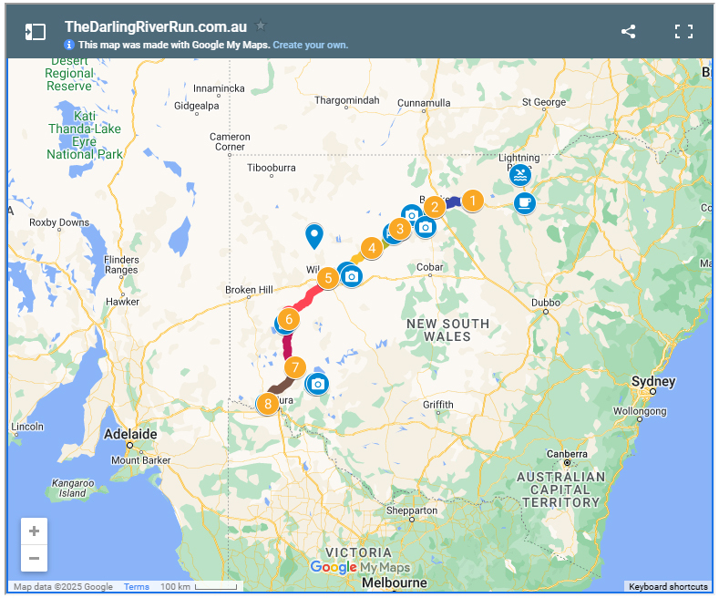 The Darling River, characteristically secretive, quietly begins just out of sight, hidden in the spread of overhanging limbs and sprawling River Red Gums, and with it begins the Darling River Run.